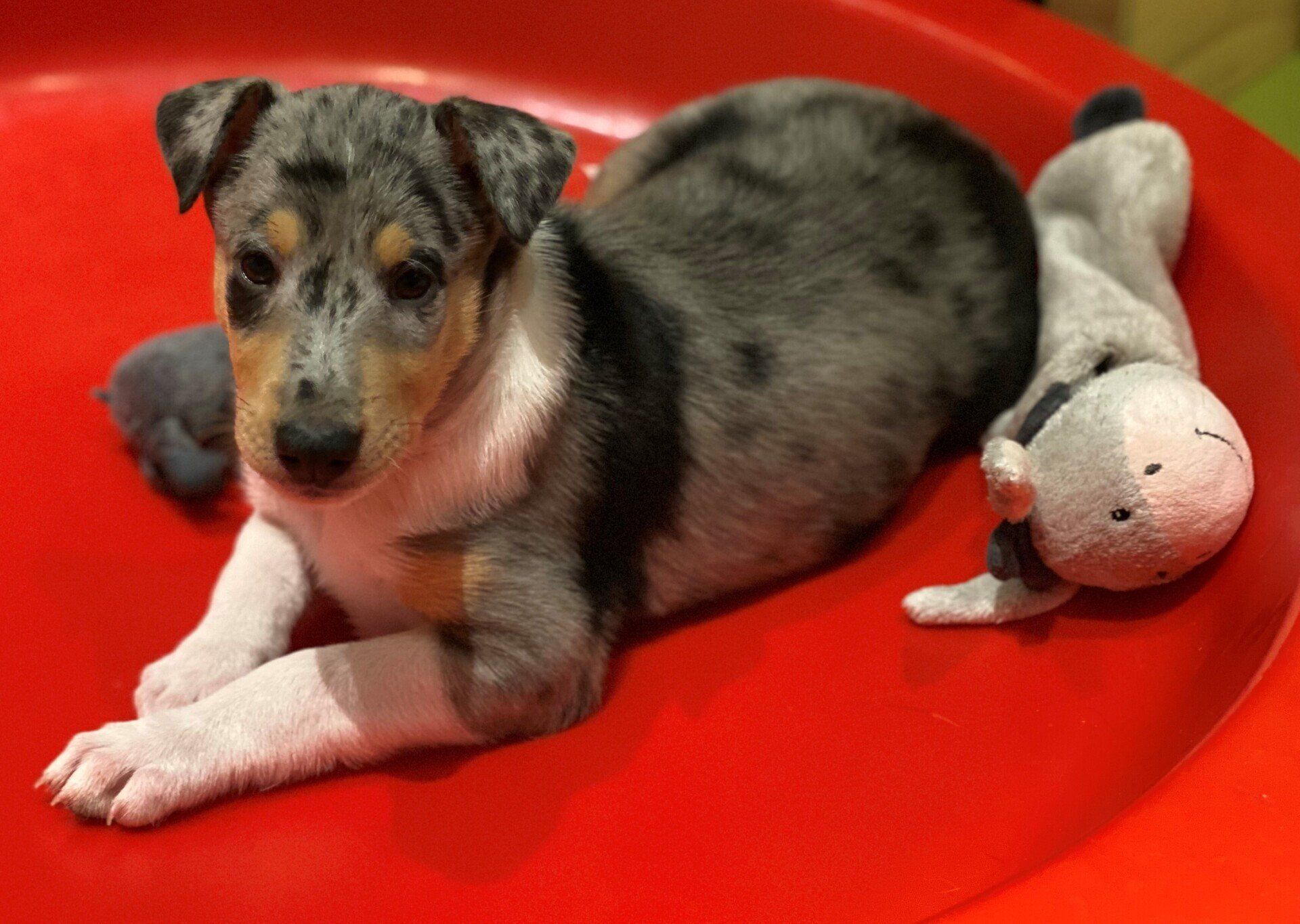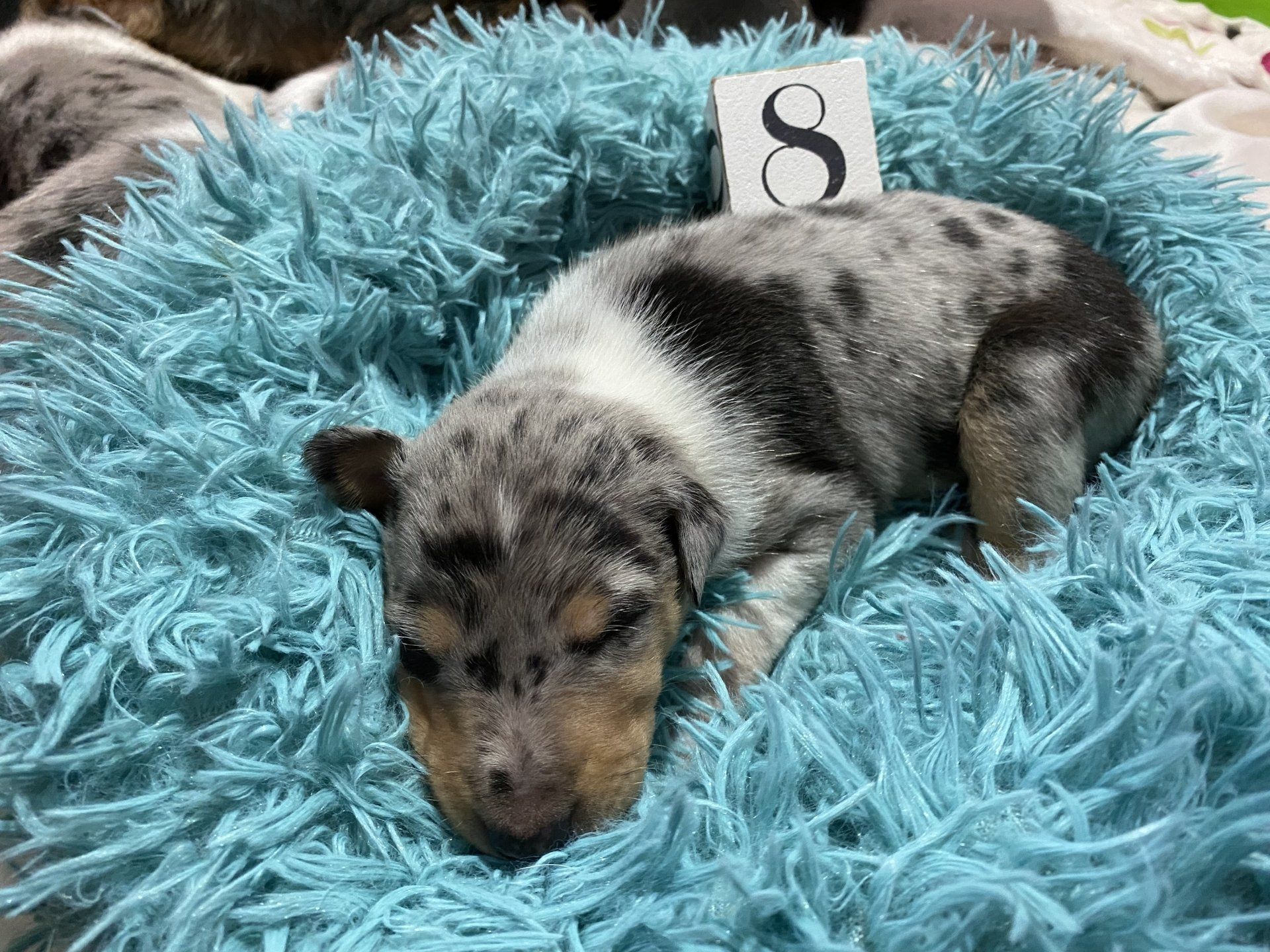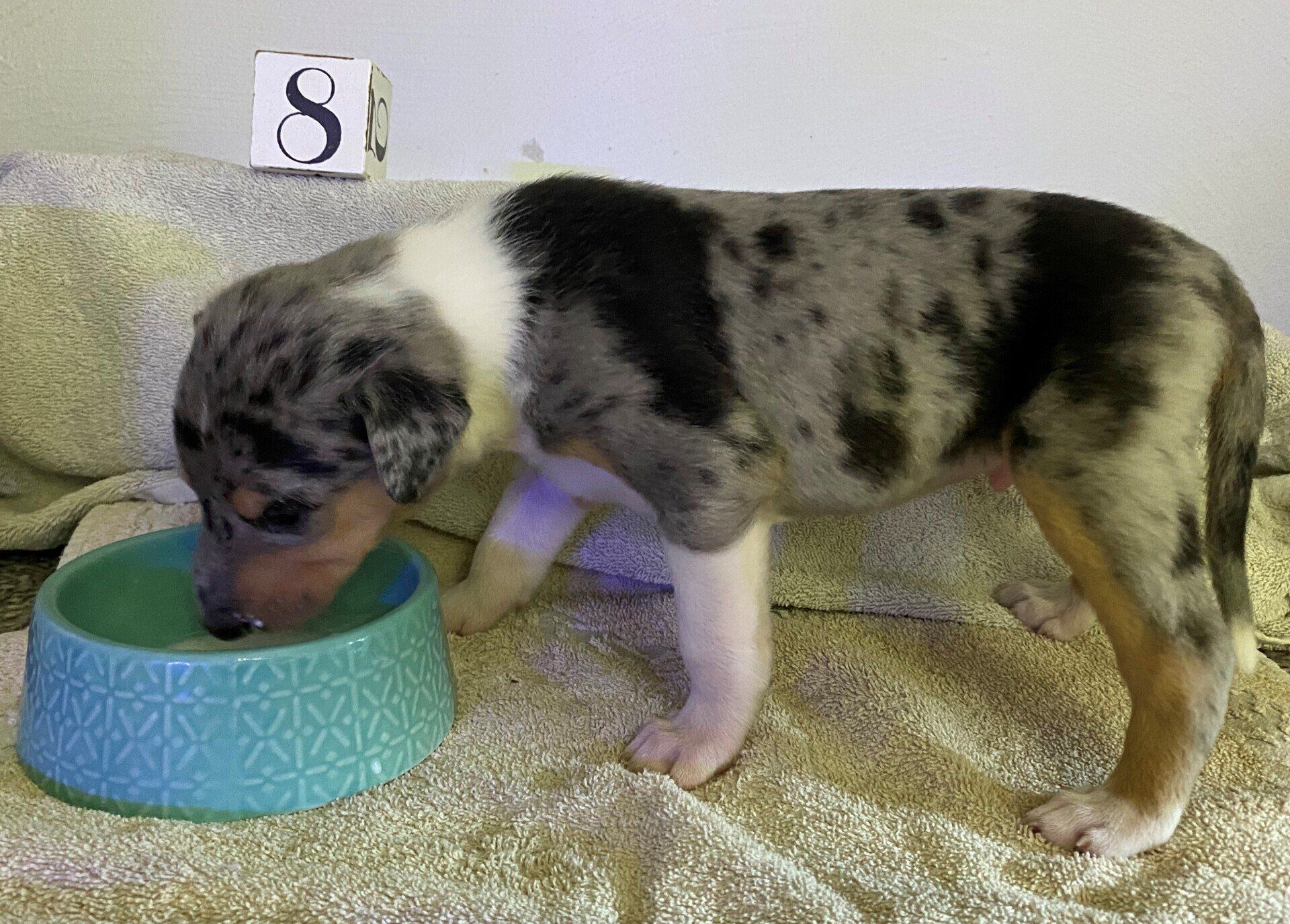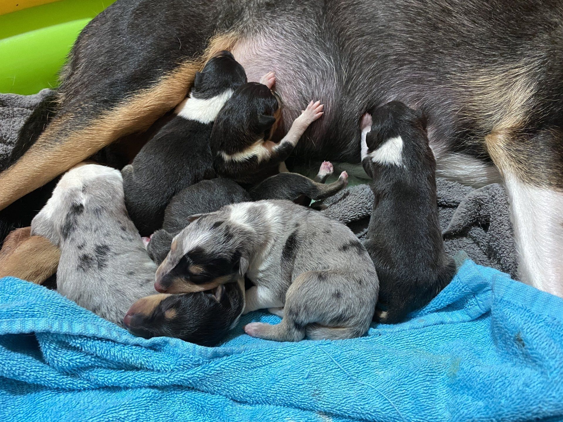 6 Jungs 2 MädelsBluemerle 4/0Tricolor 2/2Da der erste Tricobub einen Drachen als Zeichnung hat und der 3. geborene ein Herz nennen wir sie unsere Drachenkinder somit ist der Wurfname:Dragonhearts Litter